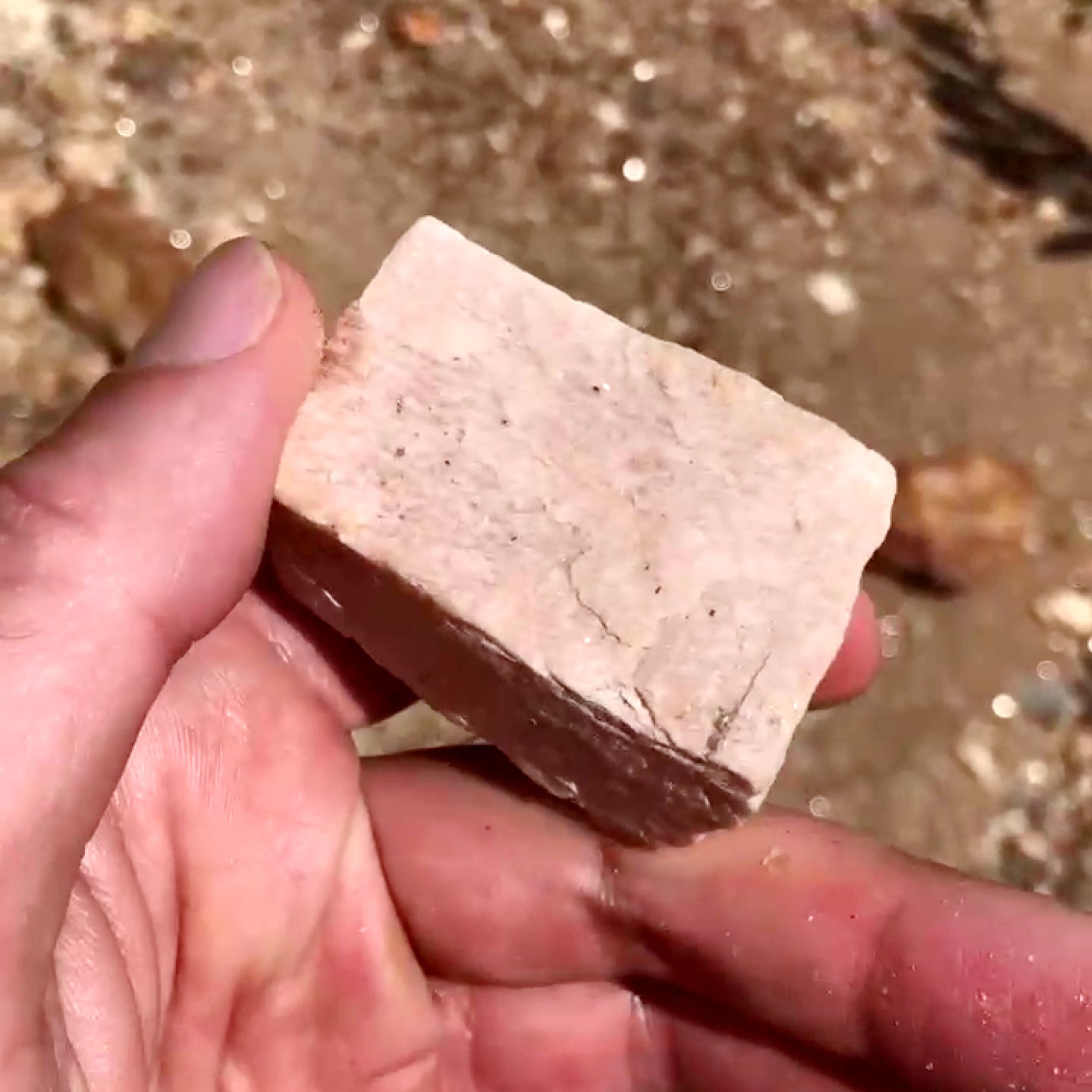 Feldspar is a common mineral with a pearly luster, often used in ceramics and glass due to its stability and variety of colors.